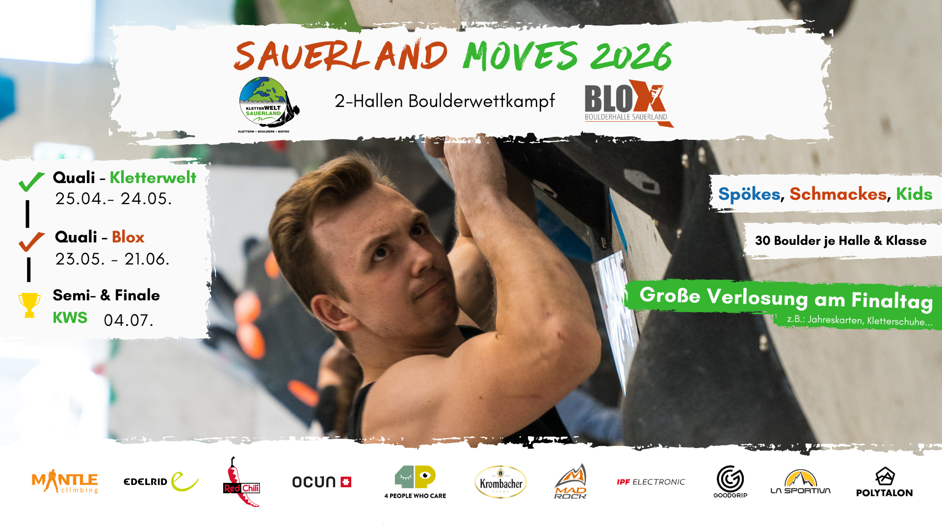 Die Sauerland Moves haben sich in den vergangenen Jahren fest in der regionalen Kletterszene etabliert – und auch 2026 heißt es wieder: gemeinsam bouldern, Punkte sammeln und am Finaltag alles geben.